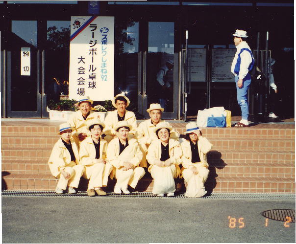 | 多士済々のメンバーを揃えたL卓球はいろいろな足跡をスポレクに残した。 楽しくプレーすることは会場の雰囲気を一変させた。 夜の飲み屋ではプロ歌手裸足の選手がスナックの客やママさんを虜にして、翌日はタルトを持って 客と店員の4名が岡山の応援に。 松山駅で会った香川県のソフトボール選手と意気投合!その日の夜は前日のスナックへ。 ソフトボールの試合を後日香川ですることを約束。 翌日は試合の合間に香川のソフトボールの応援に行った人もいました。 |